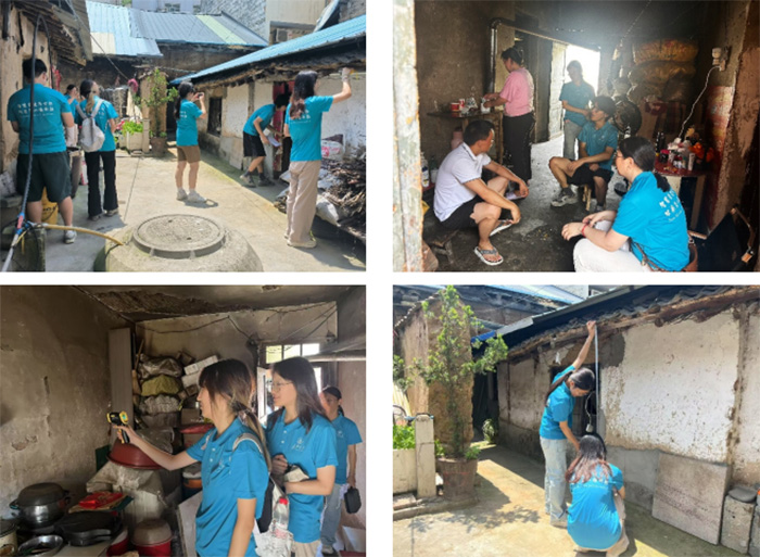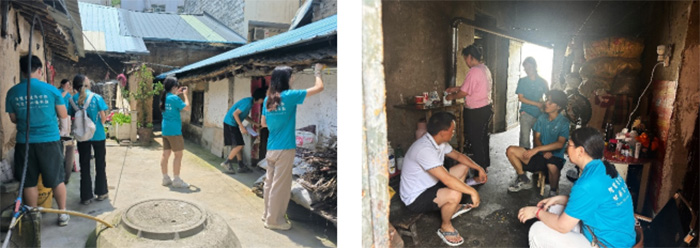 實(shí)踐隊(duì)在石鎮(zhèn)村老街測量數(shù)據(jù)、與村民交談(來源:成員自攝)