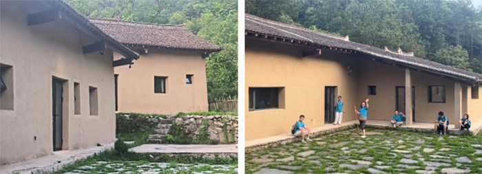 實(shí)踐隊(duì)通過(guò)實(shí)地測(cè)繪、深度訪談與空間體驗(yàn)相結(jié)合的方式,系統(tǒng)考察了該民宿集群的建筑改造理念及其所蘊(yùn)含的建筑技藝。該建筑群坐落于秦嶺半山腰處,是由廢棄的陜南傳統(tǒng)夯土民居建筑改造而成,現(xiàn)已為較為成功的高端生態(tài)旅居空間,該建筑群的改造成功為鄉(xiāng)村建設(shè)方案提供了重要參考。
