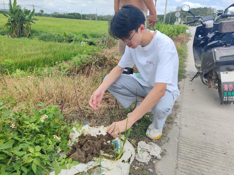 在與農(nóng)戶交流中,一戶農(nóng)戶反映近年水稻病蟲害嚴(yán)重,施用農(nóng)藥效果甚微,他還向隊員們展示了所用滅蟲害藥物。在該農(nóng)戶帶領(lǐng)下,隊員們前往稻田實地考察,采集病葉樣本和土壤樣本,計劃后續(xù)聯(lián)合指導(dǎo)老師深入研究該病蟲害及當(dāng)?shù)赝寥栏晃闆r,用專業(yè)知識減少農(nóng)戶經(jīng)濟(jì)損失。
