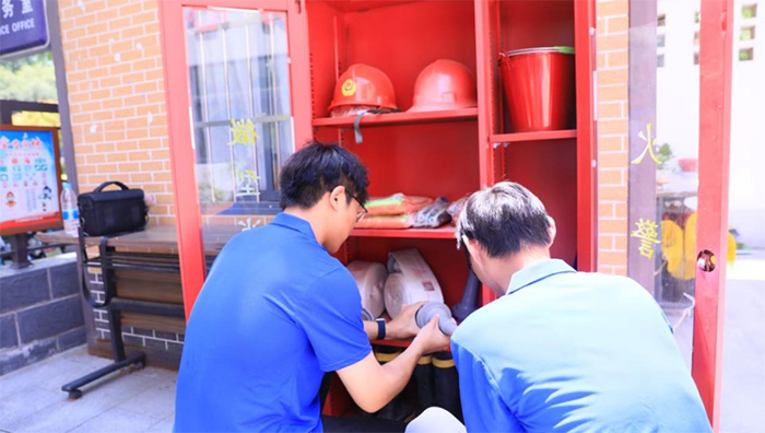 在完成開元社區的宣傳活動后,實踐隊來到天元社區居民委員會,對其消防設施進行檢查。隊員們按照相關標準和規范,仔細檢查了滅火器的壓力是否正常、生產日期和有效期是否在規定范圍內、消防栓是否能夠正常出水、消防通道是否暢通、應急照明和疏散指示標志是否完好有效等情況。