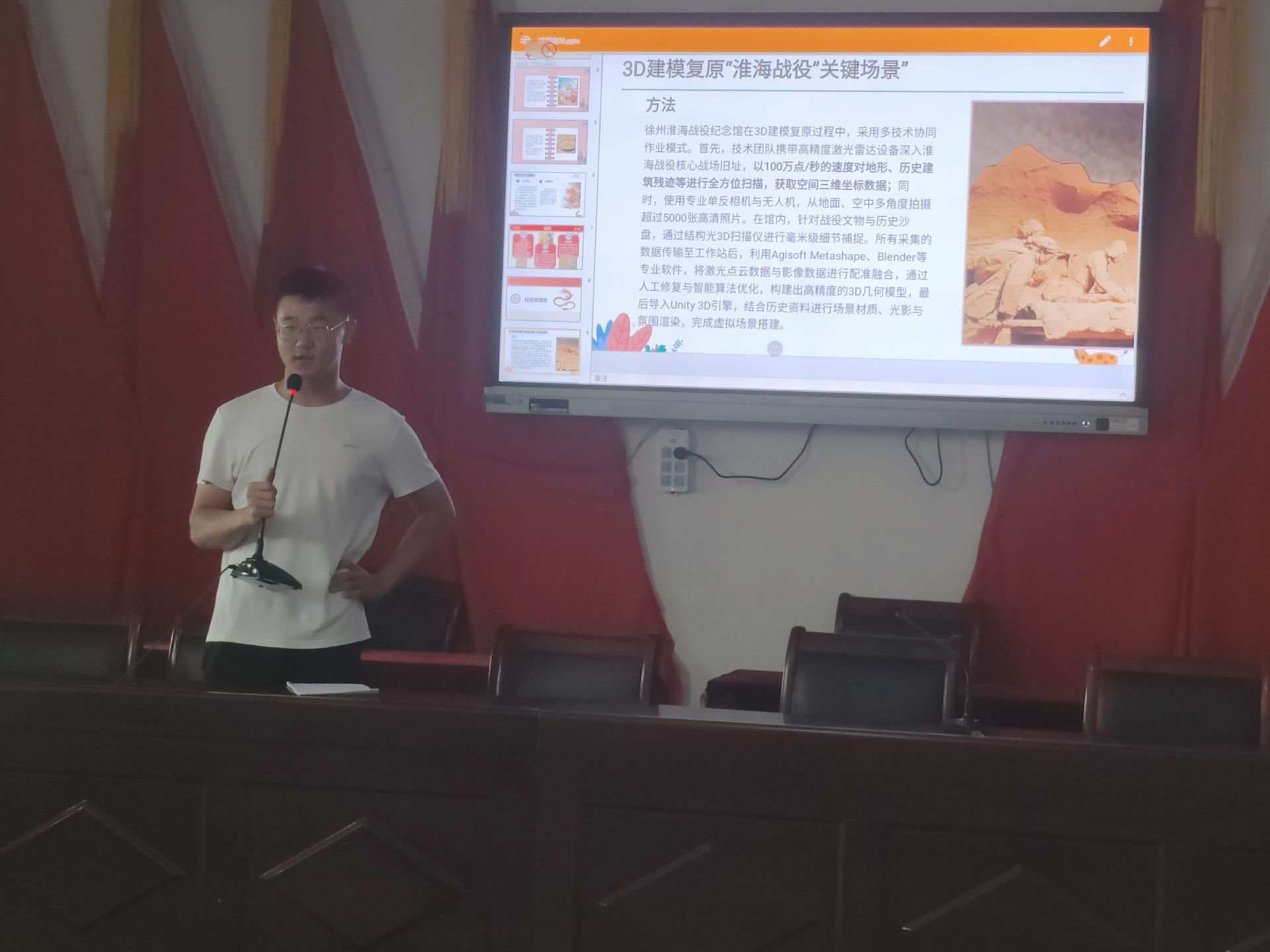 隊員們引導村民有序入座后,迅速完成宣講前的最后準備工作。隨著活動正式啟動,團隊成員丁政以主講人的身份,帶領大家開啟了一場串聯傳統文化與科技發展的 “探索之旅”。“徐州有著 6000 余年文明史,從楚漢爭霸的彭城之戰到決定解放戰爭走向的淮海戰役,這座城市的地理戰略價值貫穿古今;作為‘九朝帝王徐州籍’的文化勝地,這里更是人才輩出。” 丁政用通俗的語言搭配生動的肢體動作,將原本略顯枯燥的歷史講得鮮活立體,村民們聽得專注入神。在歷史脈絡講解之后,丁政把目光投向傳統文化,以 “龍抬頭” 民俗為切入點,結合 PPT 圖文展開系統解讀。從祭祀祈福的傳統儀軌,到舞龍表演里的集體協作智慧,再到民俗背后 “天人合一” 的生態哲學,都被一一呈現。他特別強調,這類民俗是維系鄉村情感的重要紐帶,村民們在熟悉的文化場景中,既能重溫傳統魅力,又能從協作表演中感悟奮勇向前的精神,而這種精神恰與紅色文化中 “眾志成城” 的理念相呼應。“民俗里藏著大家對生活的期待,” 丁政說,儀式中的祈福許愿,其實是對未來的積極向往,能讓村民增強生活信心與歸屬感。在講解淮海戰役歷史時,團隊準備的圖文資料成了現場焦點。孫梓瑜打開平板,調出 PPT 里的戰場示意圖與歷史照片,手指滑動間,她先指向一張泛黃的老地圖:“大家看這里,是當年碾莊戰斗的關鍵陣地。” 隨后切換到標注著戰壕走向、武器擺放位置的示意圖,又展示了記錄戰斗場景的歷史照片,“從這些圖里能清楚看到士兵的沖鋒路線,當時戰士們就是從這里奮勇向前的。” 她邊指點邊講解,一張張圖片配合生動的描述,讓村民仿佛身臨其境般重溫了當年的歷史。隨后,丁政又介紹了腦機接口技術在醫療康復、教育等領域的應用,從戰場復原的 “回望” 到科技惠民的 “前瞻”,讓村民感受到科技不僅有精度,更有溫度。“這種溫度和‘為人民服務’的紅色理念是相通的。” 他的話讓不少村民對科技創新產生了濃厚興趣。活動中設置的互動問答與采訪環節,進一步點燃了現場氣氛。“知道‘龍抬頭’為什么在二月二嗎?”“3D 技術還能用到生活里哪些地方?” 面對這些問題,村民們踴躍舉手作答,你一言我一語的交流中,學習熱情被不斷激發。活動尾聲,隊員們梳理了當天內容,鼓勵村民多了解文化與科技知識。“鄉村是文化傳承的根,也是科技落地的土壤。” 隊員們說,“文化 + 科技 + 鄉村” 的融合,未來大有可為, 既要從徐州民俗里挖科學智慧,也要把實用科技引進鄉村,讓科普真正扎根基層,為鄉村振興注入雙重動力。這場實踐活動,以 “接地氣” 的方式架起了文化與科技的橋梁。正如隊員們所說,他們希望用實際行動讓紅色文化更鮮活,讓科學知識更易懂,在鄉村土地上播下文化傳承與科技創新的種子。(注:文中圖片為實踐團隊提供)