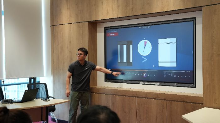 圖為機電事業部余工向大家講解直線電機和驅動器。江一帆 攝 隨后,機電事業部的余工向同學們詳細講述了 HIWIN 集團的直線電機和驅動器。HIWIN 直線電機擁有無背隙、高速度與加速度高動態響應以及單軸多動力獨立控制等突出特點,不僅在數控機床、工業自動化等傳統工業領域有著廣泛應用,在磁懸浮列車、高速電梯等新興領域也展現出了巨大的應用潛力;而 HIWIN 驅動器則采用了先進的控制技術和算法,具備超高的速度回路響應、先進的自動調試功能、動態剎車功能等優勢,在自動化和智能制造領域發揮著重要作用。