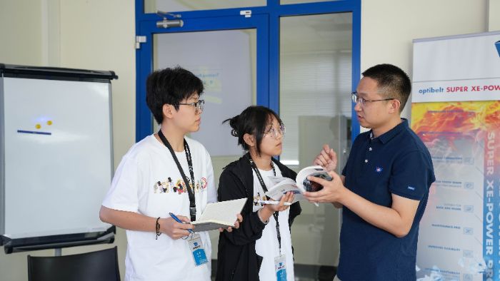圖為Optibelt亞太區總經理為大家進行品牌學習。江一帆 攝 7月16日下午,在專業人員的帶領下,同學們走進Optibelt自動化工廠。車間內,各類精密設備有序運轉,專業人員逐一介紹現場的機器設備,深入淺出地講解傳動帶從原料到成品的全生產加工過程。從原料配要求到成型工藝,從質量檢測到打最終成型,每一個環節都蘊含著Optibelt對細節的極致追求。這場生動的“現場教學”,讓同學們深刻領會到企業對傳動帶領域的專注鉆研和嚴苛的生產標準,也直觀理解了不同設備在實際生產中的協同作用,書本上的理論知識在此刻有了具象的依托。