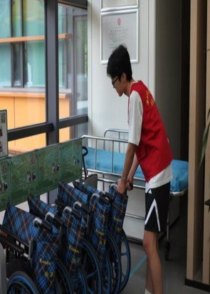 此外,實踐團針對醫院便民設施開展細節優化工作。在共享輪椅停放區,成員們按規范流程檢查設備狀態:逐一調試剎車靈敏度、擦拭扶手污漬、規整停放位置,并補充更新褪色的使用指引標識。通過細化“設備維護—環境整理—用戶引導”的銜接環節,提升共享輪椅取用便捷性,累計完成12臺設備的維護及6處標識更新,完善便民服務,改善了人們使用設施的感受。