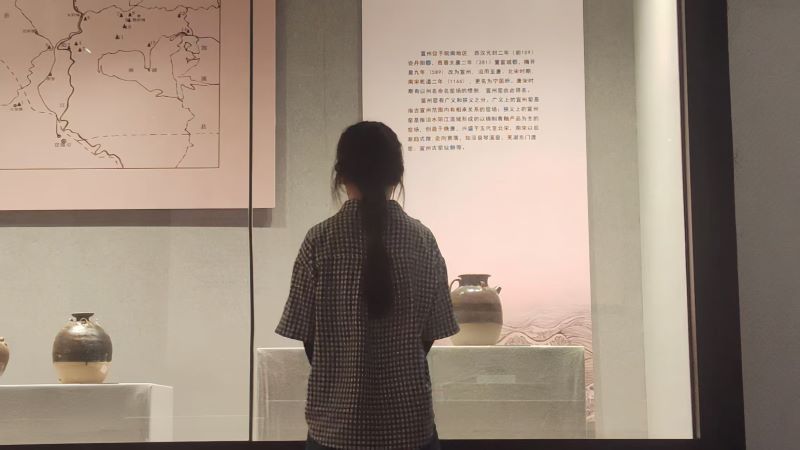 圖為志愿者在駐足觀賞文物。 黃新儼 供圖