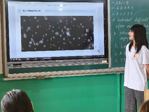 在"心為善使 博愛紅十"環節,團隊精心設計了四個特色模塊,在"紅十字會百年歷程"環節,志愿者牛禹默講述紅十字運動的起源與發展,通過歷史照片展示人道主義精神的全球傳承,用中俄雙語闡釋紅十字的基本原則;"多語種急救術語"環節則發揮專業優勢,教授學生中、英、法、日多種語言的急救呼叫用語;"國際人道援助"部分通過模擬聯合國救援場景,讓學生體驗語言在災難救援中的橋梁作用。最后以視頻和現實演示結合的方式科普了一些主要急救知識,增強了孩子們面對緊急情況時的應對能力。