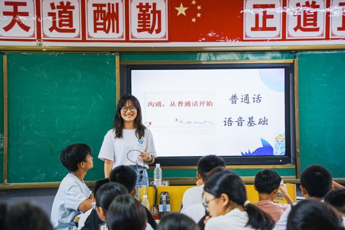 為深入貫徹國家語言文字政策,近日,華中師范大學(xué)城市與環(huán)境科學(xué)學(xué)院“經(jīng)緯拾光”實(shí)踐隊(duì)于河南省南陽市唐河金橋?qū)W校開展普通話推廣專項(xiàng)行動。實(shí)踐隊(duì)通過創(chuàng)新課程設(shè)計(jì)、方言難點(diǎn)攻堅(jiān)、情景實(shí)踐應(yīng)用三大模塊,著力提升學(xué)生語言應(yīng)用能力,積極營造文明和諧的校園語言環(huán)境。