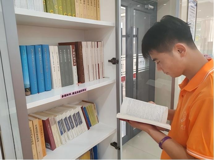 圖為實踐隊員在翻閱書籍 通訊員 魏煜彬 供圖