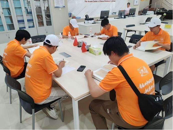 圖為實踐隊員們在摘錄抄寫 通訊員 魏煜彬 供圖