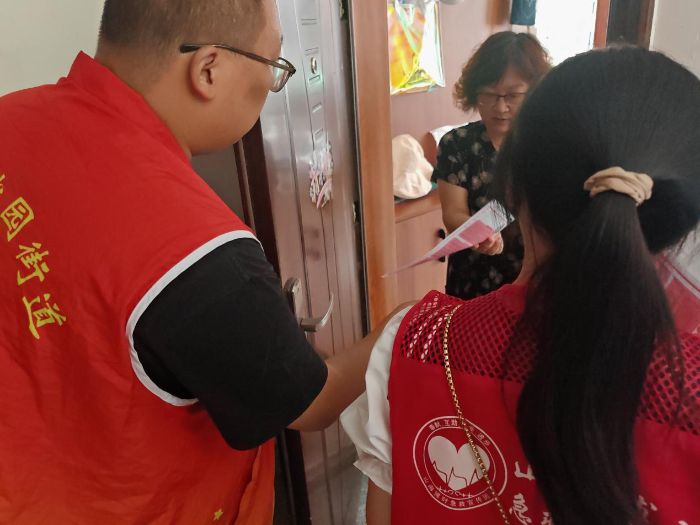 在麗景社區(qū)的大力支持下,社區(qū)網(wǎng)格員帶領(lǐng)宣傳團(tuán)成員走訪居民家中。成員們發(fā)放宣傳單并向居民細(xì)致講解急救知識,大大提高了此次急救科普活動的覆蓋率與影響力。社區(qū)的支持與協(xié)助為活動的順利開展奠定了堅(jiān)實(shí)基礎(chǔ)。