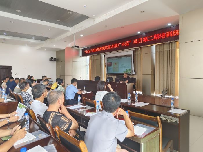 理論宣講環節,倪林副教授率先開講。他從山蒼子在畬族文化中的傳承價值切入,結合其在中醫藥領域的千年應用史,生動闡釋了這一鄉土植物的產業潛力。針對市場上核油摻假精油的亂象,倪教授提出“選種優化”方案——通過篩選皮厚核小的優良品種提升精油提取率,為產業發展破局。隨后,他系統講解水蒸氣提取精油、核油分離等核心技術,分享科技小院在提取效率提升上的最新成果,并拓展介紹精油衍生產品開發路徑,讓村民們看到“一片葉子變黃金”的科技魔力。