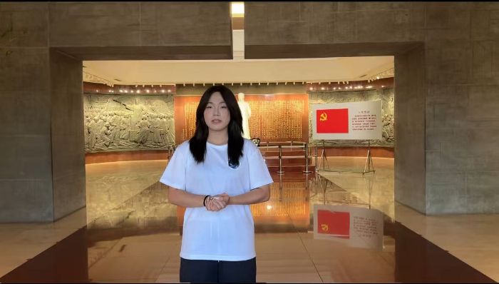 7月7日,正值七七事變88周年紀念日,在長鳴的警鐘聲中小隊成員懷著對歷史的追思,展開了對未來的期許,開始了思政微課與紅色歌曲MV的拍攝,是小組創(chuàng)新紅色傳播的嘗試,力爭將大釗精神傳播到每個人心中。思政微課上,隊員們結合紀念館的展陳內容,剖析大釗精神的時代價值,將理論宣講與紅色故事相融合,讓思政教育“活”起來,讓紅色文化借助新媒體平臺,傳播得更遠、更廣。