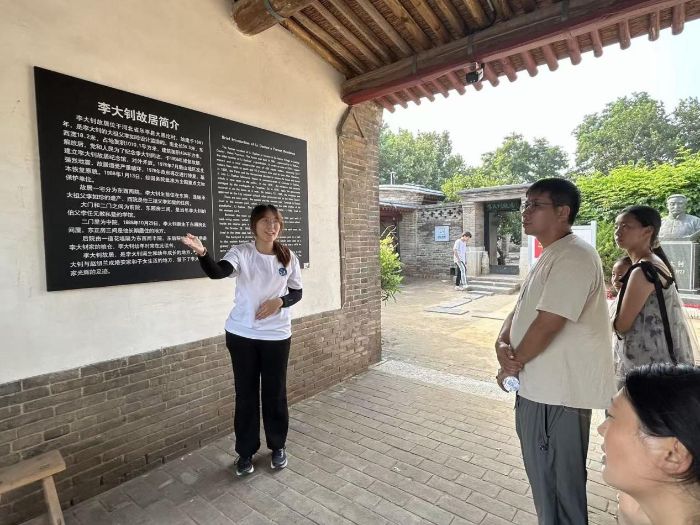 在李大釗故居,隊員們化身志愿講解員,向游客講述大釗故事。從故居的一磚一瓦,到陳列的文物史料,他們用生動的講解,讓游客深刻感悟大釗精神的內涵,讓紅色故居成為傳承信仰的課堂。