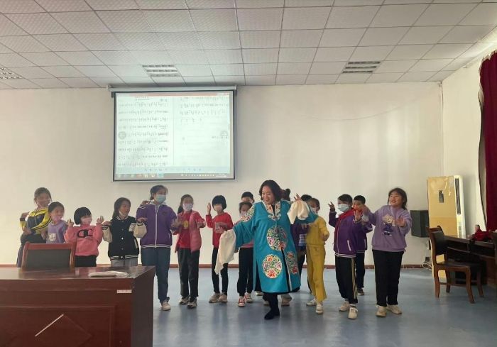 在互動環節,實踐隊員們準備了一些簡單的茂腔唱段,教孩子們學唱。在實踐隊員們的鼓勵下,他們認真地跟著學起來。教室里回蕩著孩子們稚嫩的歌聲,充滿了生機與活力。除了學唱,實踐隊員們還教孩子們簡單的茂腔表演動作,孩子們學得有模有樣。為了加深孩子們對茂腔的理解,實踐隊員們更是邀請茂腔傳承人講述了許多茂腔經典劇目的故事,如《羅衫記》《盼兒記》等。孩子們聽得津津有味,被劇中的情節和人物所打動。通過這些故事,孩子們不僅了解了茂腔的內容,還感受到了茂腔所傳達的價值觀和情感。