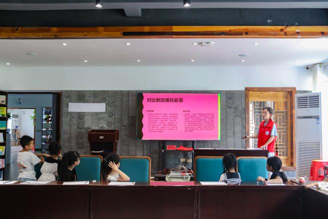 為了進(jìn)一步加深孩子們對電影人物的理解,趙雪老師邀請孩子們上臺表演電影中的經(jīng)典場景。孩子們分組合作,模仿哪吒和其他角色的動作與臺詞,通過親身參與,他們更深刻地感受到了角色的情感與電影的魅力。這一環(huán)節(jié)不僅鍛煉了孩子們的團(tuán)隊協(xié)作能力,還增強(qiáng)了他們對藝術(shù)作品的感知與理解。
