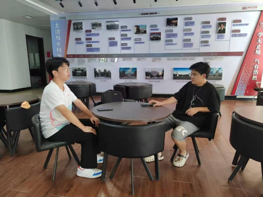 參觀結束后,實踐隊與張恒、孫胤棟學長圍繞智能建造發展與科研創新展開專題訪談。談及未來方向,學長們表示,智能建造將在設計環節依托AI實現方案自動優化,施工階段通過自動化設備與智能調度保障高效安全,運維階段借助數字孿生技術實現預測性維護。在科研建議方面,他們強調需聚焦AI算法的行業適應性改進、BIM與AI融合技術攻關及智能實驗平臺搭建,加速成果轉化。