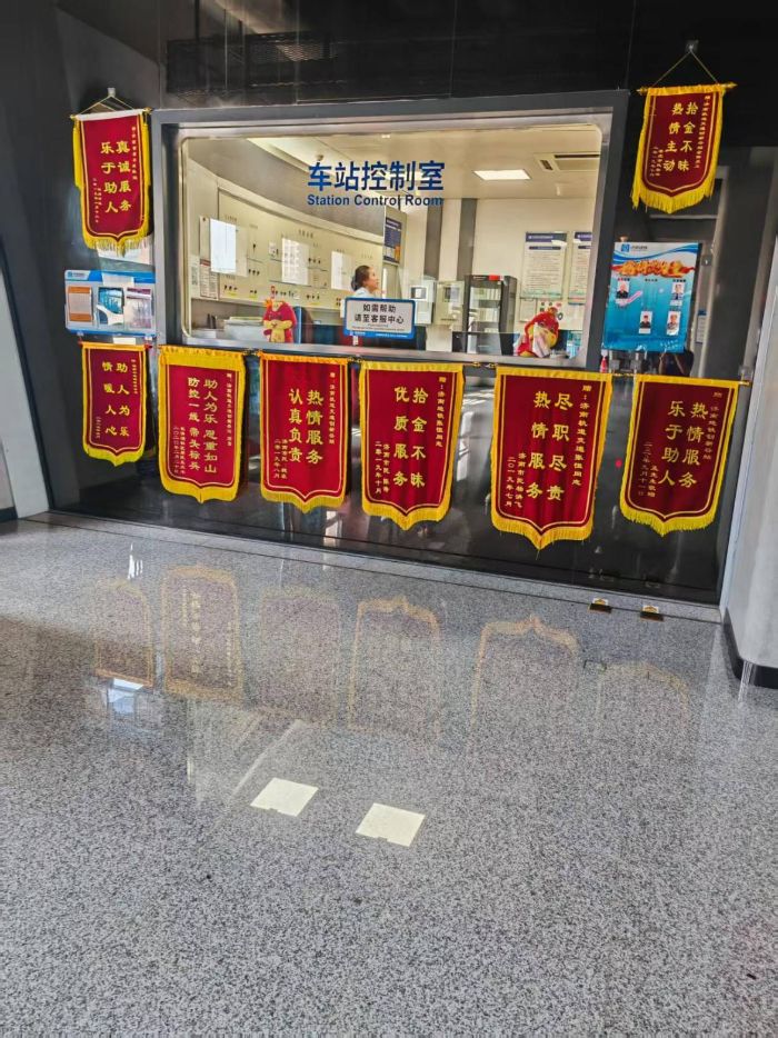 此外,該站還設(shè)有“創(chuàng)新谷號”主題列車,融入“山、泉、湖、河、城”元素,分多個主題車廂,并且工作人員服務(wù)周到,獲市民送錦旗表揚。