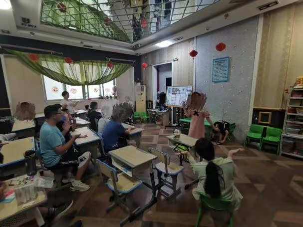 串珠活動(dòng)結(jié)束后,康復(fù)中心里音樂(lè)響起。社會(huì)實(shí)踐團(tuán)隊(duì)成員與殘障小朋友們共同舞蹈。團(tuán)隊(duì)成員看著孩子們,他們手勢(shì)起初有些凌亂。但他們的眼神緊緊交匯,傳遞著鼓勵(lì)。在旋律中,孩子們漸漸放松,開(kāi)始享受舞蹈。孩子們的動(dòng)作從僵硬變得自然,從怯弱變得自信。團(tuán)隊(duì)成員與孩子們的身影在音樂(lè)中交錯(cuò)、重疊,仿佛形成了一幅唯美的畫(huà)。此刻,時(shí)間仿佛停止,只有康復(fù)中心內(nèi)的音樂(lè)與歡笑。