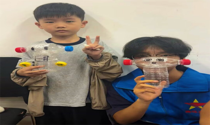 活動最后,大家圍坐在一起分享心得。“我要告訴爸爸媽媽,我和小伙伴們一起用塑料瓶做了一個機器人。”“我要爺爺奶奶,我們今天用自己的雙手制作了很多有趣的東西。”孩子們的話語雖簡單,卻透著堅定的決心。志愿者老師也露欣慰的笑容。