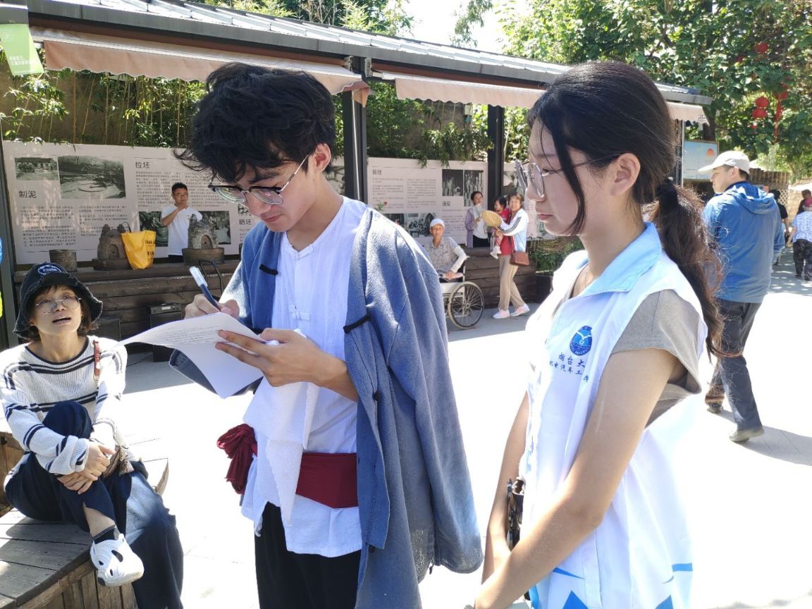 表演結束后,隊員們在顏神古鎮進行參觀,了解古鎮中各店鋪的銷售情況,并且采購了一些小禮物,同時對游客、店鋪等進行采訪、發放調查問卷,了解大眾對琉璃的認識程度。