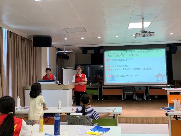 課堂上,傳統的“老師講、學生聽”模式被徹底打破。隊員們運用戲劇范式,引導學生深度參與劇情探討與表演。在《杰克與魔豆》的課堂上,孩子們分組討論“杰克拿巨人的鵝和琴的行為如何”,讓他們樹立起正確的價值觀,在歡笑中明白“即使處于苦難,也能幸福”;演繹文言文版《紀昌學射》時,學生們模仿“臥于其妻之機下”的姿態,反復練習“視小如大”的動作,在沉浸式體驗中真切體會到“專注與堅持”的人生道理。
