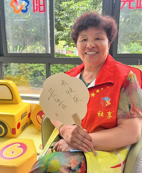 “在扇面上寫祝福,既傳承了老手藝,又把社區的人情味都融進去了!讓我們在炎炎夏日感受涼風,感受愛!”參與活動的王奶奶感慨道;顒蝇F場,氣氛熱烈而溫馨。銀發志愿者們熱情高漲,紛紛拿起畫筆,蘸上顏料,在扇面上精心創作起來。有的老人一筆一劃地勾勒著圖案輪廓,有的則大膽地揮灑顏料,為扇面添上鮮艷的色彩。實踐團成員穿梭在人群中,為老人們提供協助和建議,不時傳來陣陣歡聲笑語。銀發志愿者們不僅是文化的傳承者,更成為社區精神的傳播者——書法技巧的切磋交流、互贈祝福的溫暖瞬間,在一把把漆扇上繪就了鄰里和諧的生動圖景。經過一個多小時的創作,一把把精美的手繪福扇誕生了。這些扇子不僅凝聚著銀發志愿者們的心血和創意,更飽含著實踐團成員對他們的深深敬意。實踐團成員將這些福扇雙手遞到老年志愿者手中,并向他們鞠躬致謝,感謝他們為社區服務所付出的辛勤努力。(通訊員沈思穎)