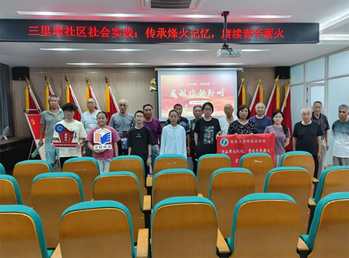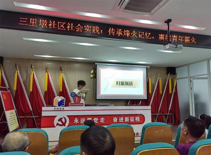 7月27日,南通大學“傳承烽火記憶,賡續青年薪火”實踐小分隊來到崇川區三里墩社區,開展了一場以“烽火中的文化力量——中國抗戰文化回顧與傳承”為主題的“烽火歲月·抗戰精神尋根行”實踐活動。此次活動旨在挖掘抗戰歷史肌理,傳承紅色精神血脈,通過PPT宣講、有獎知識競答等形式,向社區居民普及抗戰文化知識,弘揚偉大的抗戰精神。