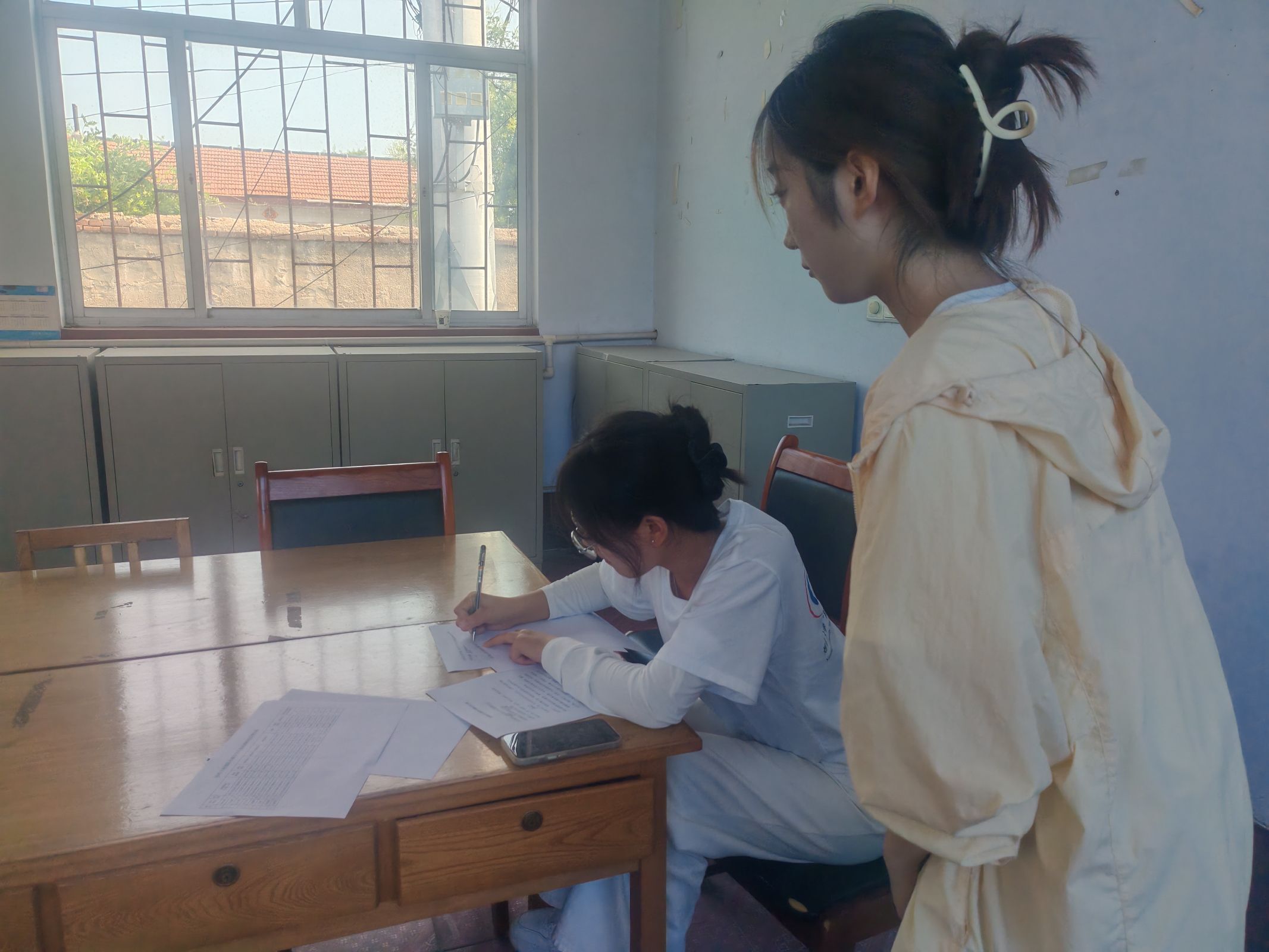 調研期間,團隊參與了社區資料整理工作。在社區辦公室內,多張長桌拼接的工作臺上整齊堆放著各類文件材料,社區工作者與各村抽調人員分工協作,有條不紊地進行分類、登記、歸檔。成員們注意到,現場的值班臺賬詳細記錄了每日在崗人員、事務處理詳情、問題解決流程等內容;走訪記錄則精準記載了特殊家庭信息,包括獨居老人身體狀況與幫扶需求、困境兒童學習生活難題等,字里行間滿是對居民的深切關懷。暑期防溺水工作相關材料是此次整理的重點。考慮到暑假期間青少年安全問題的重要性,隊員們對防溺水宣傳單發放回執、危險水域排查表、家長承諾書等材料進行梳理,在整理過程中深刻體會社區工作者為保障青少年安全所付出的努力。