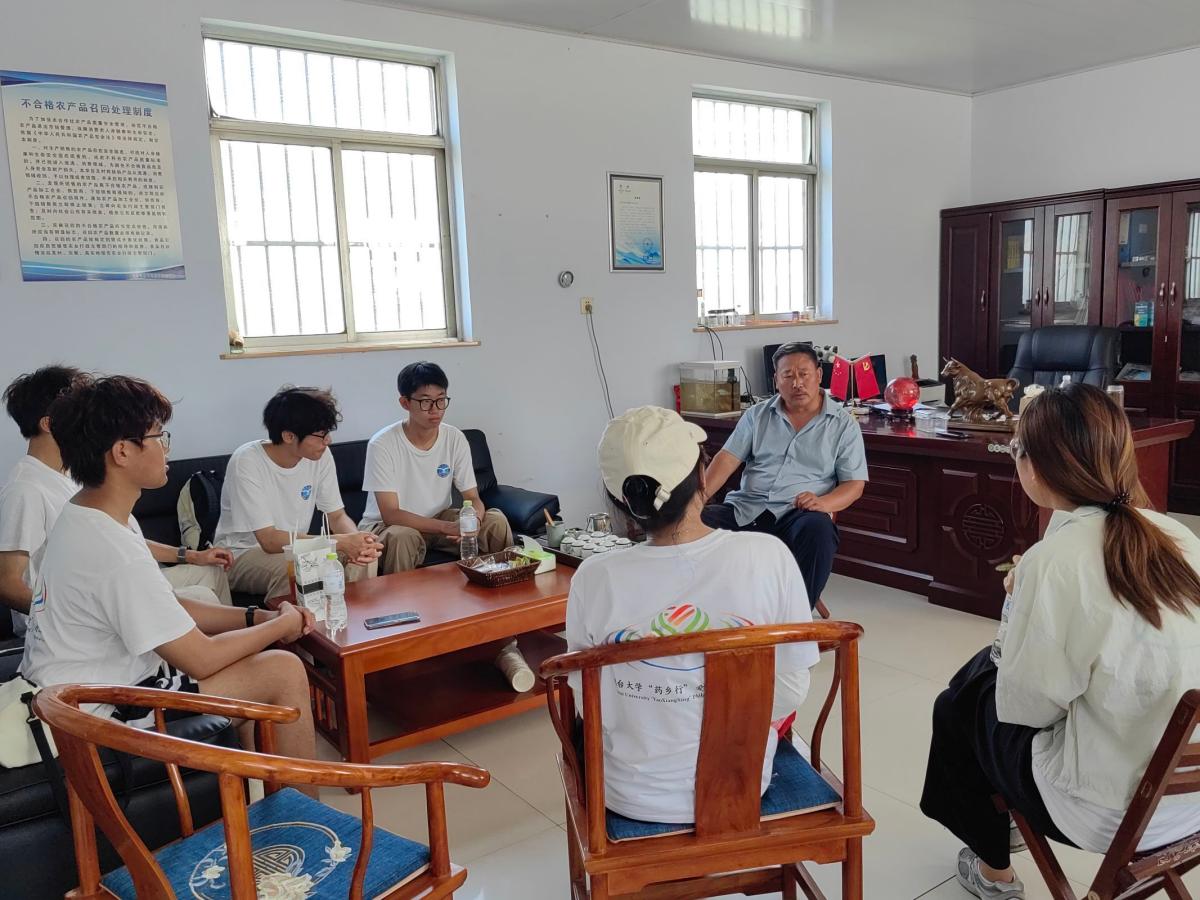 阡陌識藥草,研學悟醫道。7月8日,團隊首站探訪安丘市金冢子鎮涼泉村的盛青禾農場。我實踐隊成員向農場負責人學習丹參、黃芩、蒼術、赤芍等中草藥的種植技藝與藥用價值,了解“藥食同源”作物的種植管理模式,為后續活動開展打下堅實基礎。
