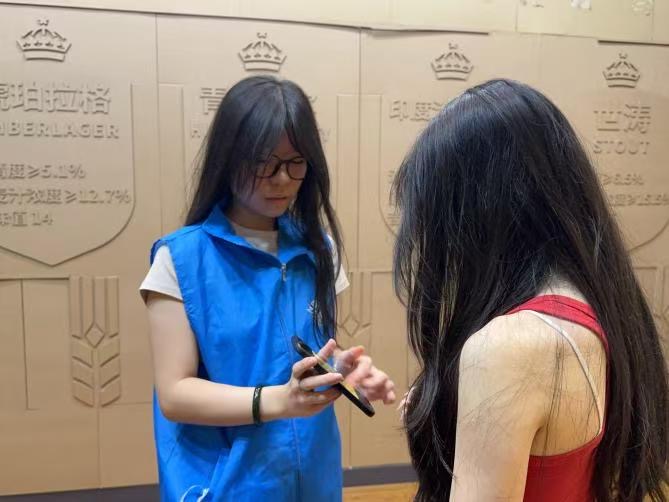 7月15日,實踐隊前往薛家島街道,采用“分眾化調研”策略,兵分多路分發調查問卷。在車水馬龍的繁華商圈,隊員們向往來游客與市民細致講解調研目的,重點收集不同地域人群對青島酒文化的認知畫像;走進社區廣場,則將目光投向常住居民,深入探尋中老年群體對傳統釀造工藝核心價值的理解,那些口耳相傳的匠藝細節,在調研中凝結為珍貴的文化記憶。