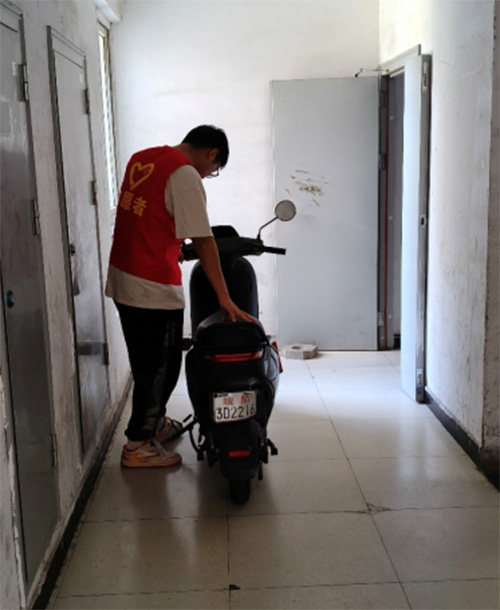 實踐的七天里,這支由計算機與信息工程學院學子組成的小分隊,用腳步丈量社區每一條道路,用雙手改變每一處亂象。第一天與龍池社區負責人深談,他們摸清了“道路成停車場、樓道變車棚”的癥結;第三天手繪停車地圖時,鉛筆線條里藏著對“便民”與“暢通”的權衡;第四天豎起的停車標識牌,紅白色的警示里寫著“規范”的邊界;第六天分組整治時,汗水浸透的衣衫見證著他們如何耐心勸說車主,如何合力將無主車輛移至劃定區域,如何將樓道里的自行車一輛輛搬至分類車棚——那些曾經堵塞生命通道的“障礙”,在青春的手底變成了整齊排列的“風景”。