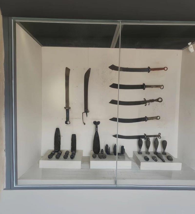 圖中陳列著大刀、土制炸彈等革命文物,見證烽火歲月。 黃新儼 供圖