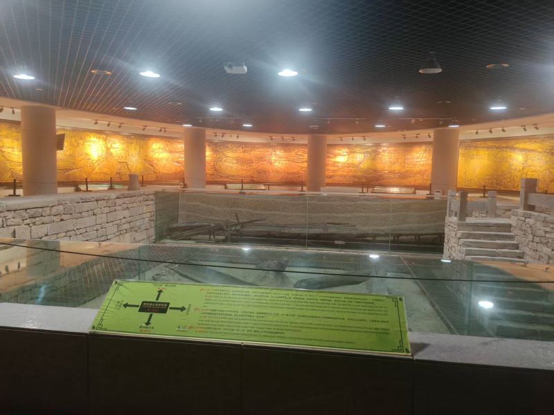 圖為淮北市博物館內景,可見玻璃展柜及背后展現歷史場景的金色浮雕,呈現調研實踐的空間環境。 黃新儼 供圖