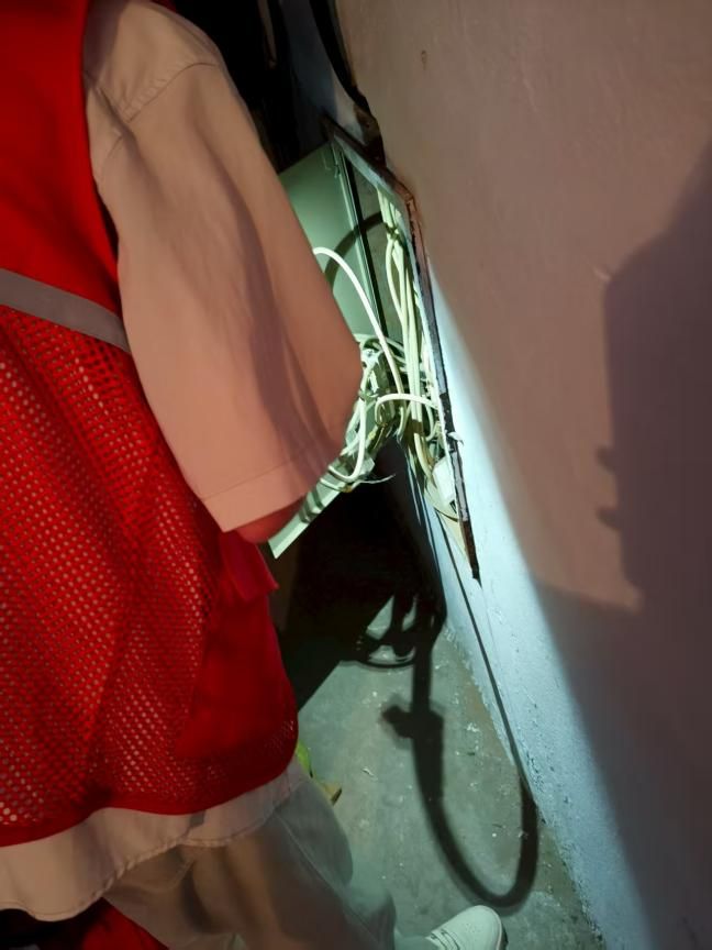 隨后隊員又對電箱進行檢查,觀察是否有除電線外的雜物堆放,有無私接電路,看電路設備是否老化等,防止電路問題而影響的火災發生。