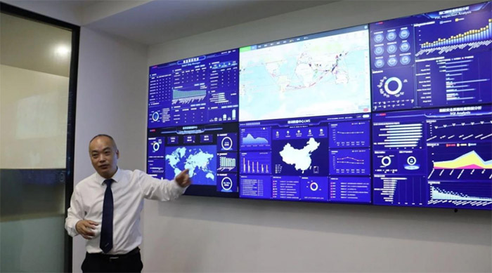 (圖2:青島洲際之星船務有限公司負責人介紹數據墻。蘇佳怡 供圖)