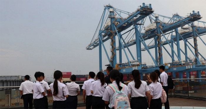 (圖4:“智思領航4.0”實踐隊在青島港平臺觀看自動化碼頭作業。張聞柏琳 供圖)