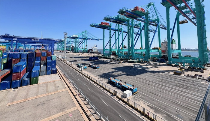 技術升級:自動化碼頭的智能化與零碳化突破 青島港全自動化碼頭的A-TOS系統則指揮著AGV(自動導引車)集群,實現集裝箱裝卸運輸全流程無人化精準管控。