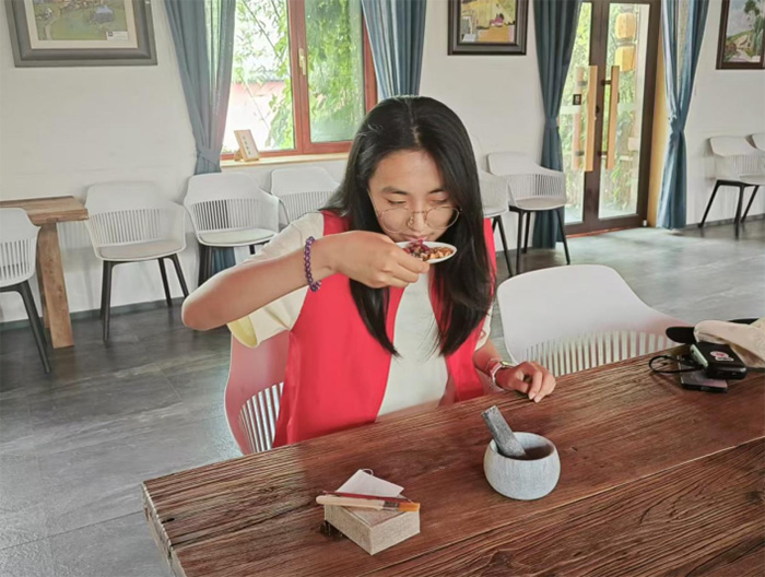 藝術氣息彌漫的竹夢村呈現了文旅共生的新實踐。隊員與村民一同體驗了香囊制作。這一傳統手工藝已轉化為受歡迎的文旅體驗項目,既讓游客感受民俗魅力,也為村民開辟了增收渠道。讓藝術為鄉村注入活力,最終目標是游客愿意留下來,村民真正得實惠。竹夢村“文化+產業+富民”的融合模式,成為藝術賦能鄉村文旅的典型范例。