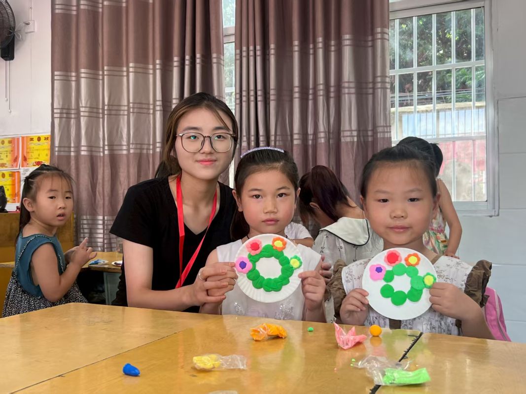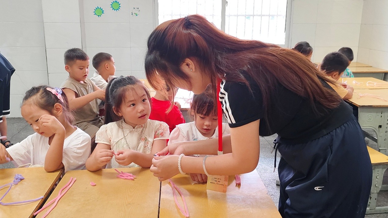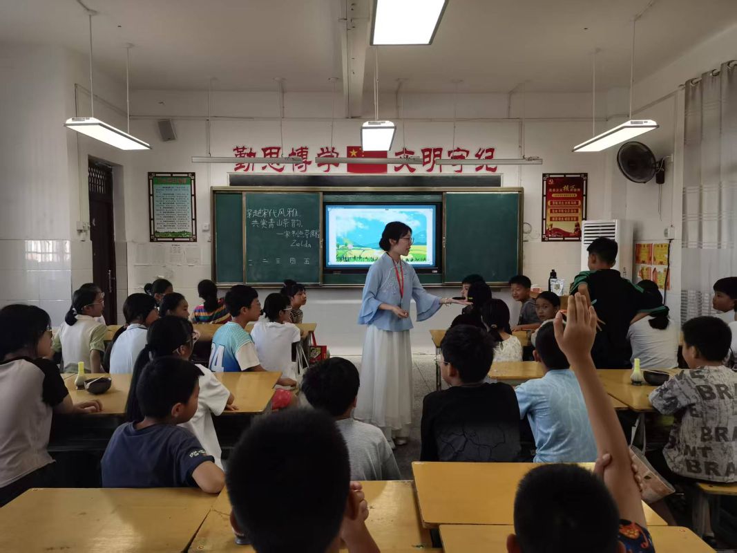 7月14日,鄉(xiāng)野校園被盛夏的綠意擁裹著,“美育浸潤(rùn)計(jì)劃”暑期實(shí)踐團(tuán)隊(duì)的支教故事,正順著攀升的日頭蔓延開(kāi)來(lái),在蟬鳴與笑語(yǔ)里愈發(fā)熾熱,新意與溫度一同生長(zhǎng)。A、B、C、D四個(gè)班級(jí)同步開(kāi)啟特色藝術(shù)課程,孩子們?cè)谥讣獾撵`動(dòng)與心靈的感悟中,親手創(chuàng)造美、觸摸美、傳承美,讓藝術(shù)的種子在歡聲笑語(yǔ)中悄悄發(fā)芽。