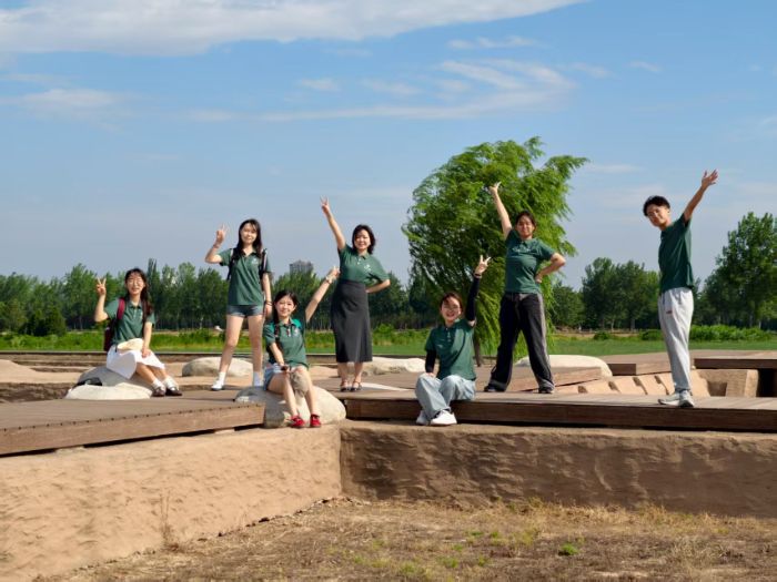 實(shí)踐征程始于漢長(zhǎng)安城未央宮國(guó)家考古遺址公園。隊(duì)長(zhǎng)秦梓逍引導(dǎo)隊(duì)員沿前殿遺址夯土臺(tái)基實(shí)地踏勘,綜合運(yùn)用徒步觀察、無(wú)人機(jī)航拍及文獻(xiàn)研讀,系統(tǒng)采集遺址空間布局、夯土層理及基址形制信息,深入解析“前朝后寢”功能分區(qū)與“天人合一”的營(yíng)建理念。在漢城湖旅游風(fēng)景區(qū),隊(duì)員們對(duì)比歷史文獻(xiàn)與現(xiàn)狀景觀,觀察仿漢建筑群的飛檐斗拱,思考生態(tài)修復(fù)與遺址保護(hù)的協(xié)同發(fā)展模式。