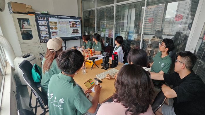 調(diào)研中,實(shí)踐隊(duì)與企業(yè)團(tuán)隊(duì)圍繞“文化符號(hào)的當(dāng)代表達(dá)”展開(kāi)深入研討。雙方在環(huán)保材料應(yīng)用、成本控制、用戶(hù)年齡分層適配等關(guān)鍵議題上形成共識(shí)。落昊飛老師在交流中指出,成功的文創(chuàng)設(shè)計(jì)需精準(zhǔn)把握文化內(nèi)核與產(chǎn)業(yè)邏輯的雙重平衡。