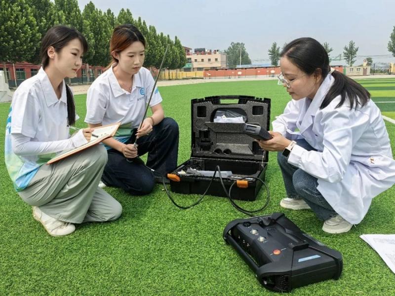 成員們攜帶大氣采樣器、顆粒物檢測儀等專業設備,在學校操場、工廠附近、田地周邊、居民長行路段等監測點開展數據采集。成員們規范操作采樣裝置,重點檢測PM2.5、PM10等顆粒物濃度,并同步記錄溫度、濕度及有害氣體含量等參數。經精密儀器分析,全面掌握區域空氣質量狀況,為大氣環境改善方案的制定提供科學依據。