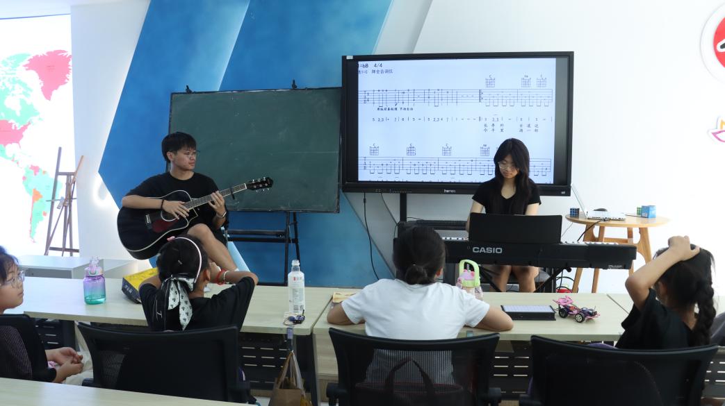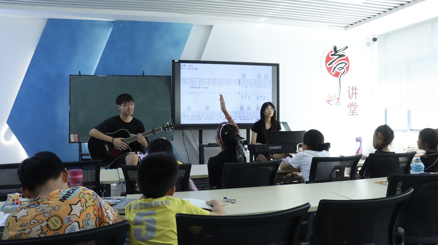 七月的驕陽似火,荷韻小學校園內綠樹成蔭,蟬鳴陣陣。7月28日下午,在荷韻小學明亮整潔的活動室里,一場別開生面的音樂課正在火熱進行。“圓夢”暑期實踐團的成員們,帶著對鄉村教育的熱情和對藝術啟蒙的信念,為這里的孩子們打開了一扇通往音樂殿堂的窗戶;顒邮覂,稚嫩的臉龐洋溢著期待與興奮,空氣中彌漫著躍動的音符和對藝術的好奇。
