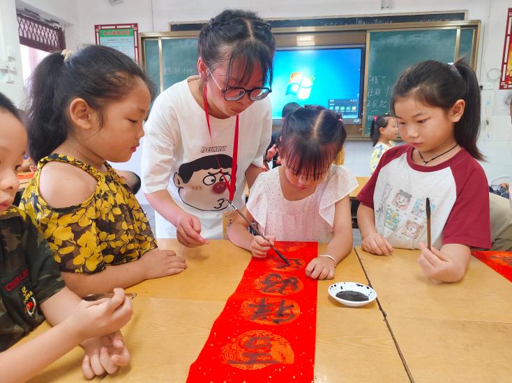 7月16日,"美育浸潤計劃"愛心托管班教學(xué)活動如火如荼的進(jìn)行著。支教團(tuán)隊以"紅色基因傳承多元藝術(shù)啟蒙"雙輪驅(qū)動,精心打造少先隊史教育、書法楹聯(lián)、奧爾夫音樂、植物拓印、牛津英語等特色課程,為孩子們的暑期生活增添化滋養(yǎng)與成長動能。
