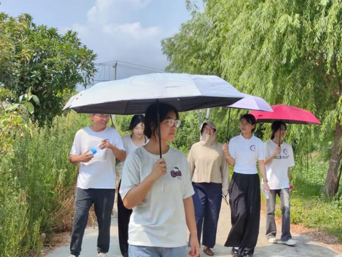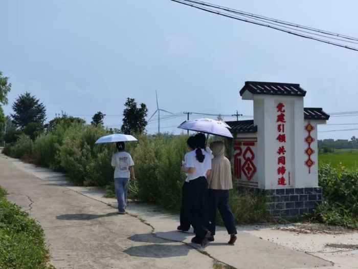 飯后,孔同學主動邀請團隊在家鄉附近轉轉。邊走邊介紹時,她自豪地向大家講解了家鄉近幾年的顯著變化,開心地分享國家政策賦能鄉村的點點滴滴。她提到,曾經坑洼難行的土路,如今已修成平整的水泥路,連通了家家戶戶;路旁新建了繪有鄉村振興愿景的文化宣傳欄;在破舊農舍的旁邊,能看到新建的安居房正在拔地而起。孔同學介紹道,過去道路泥濘、垃圾隨意堆放,雨天出行困難且環境差。如今,得益于鄉村環境整治等國家政策的扶持,整個生活環境已經發生了巨大的改善。