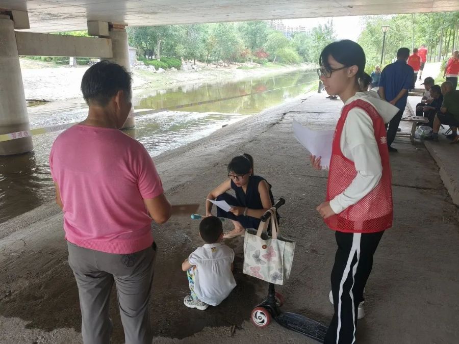 正午,隊(duì)員們跟隨丁家社區(qū)疏主任趕往虞河邊,勸阻想要下水的孩子們遠(yuǎn)離水域。同孩子們交流的過程中,隊(duì)員們深刻體會到“責(zé)任”二字的分量——它并非抽象概念,而是危險面前的多問一句、多走一步,是每一次彎腰勸誡、耐心引導(dǎo)的實(shí)在行動。