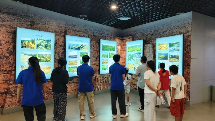 “數(shù)字黃河”是以大數(shù)據(jù)、人工智能、遙感監(jiān)測等新一代信息技術(shù)為支撐的綜合治理體系。通過部署各類智能感知終端,實現(xiàn)對黃河水位、水質(zhì)、流量、氣象等數(shù)據(jù)的實時采集與動態(tài)管理,為防汛抗旱、生態(tài)修復(fù)提供科學(xué)決策依據(jù)。在展館的交互體驗區(qū),團(tuán)隊成員親自操作數(shù)字沙盤系統(tǒng),模擬流域變化、汛情調(diào)度、生態(tài)調(diào)節(jié)等場景,深刻感受到科技在水利治理中的力量。