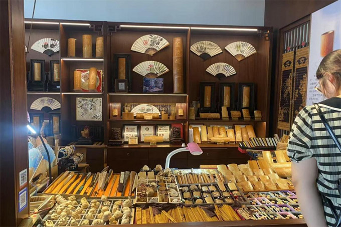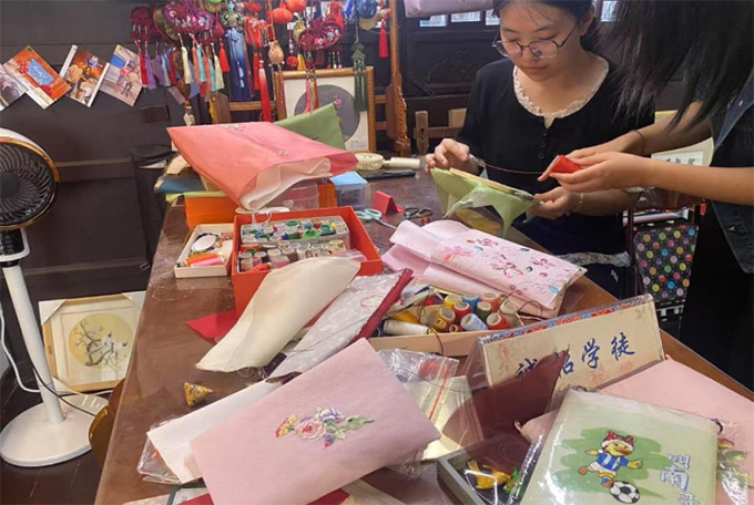 在甘熙宅第故居內,調研團首先參觀了南京刺繡展示區。作為江蘇省非物質文化遺產,南京刺繡以其細膩的針法、精美的圖案聞名于世。在非遺傳承人的指導下,成員們嘗試了基礎的刺繡技法,一針一線間體會了傳統手工藝的匠心獨運。