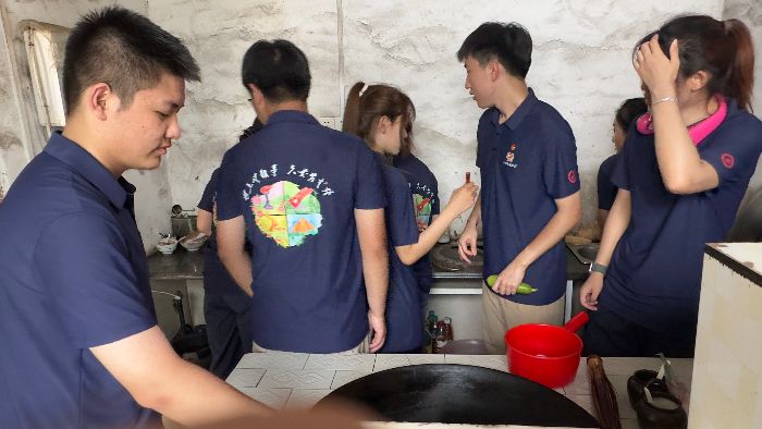 (圖為實(shí)踐團(tuán)成員在制作“紅軍餐”)