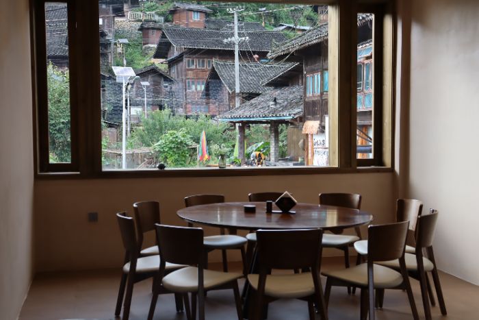 ▲圖為村集體經濟--嵐野餐廳內景 村集體經濟負責人、名譽村長袁村長向實踐團介紹,2022年起烏東推動文旅融合,打造“烏東釀造”酒坊,以苗寨樓閣為門面,不設菜單,為游客營造舒適體驗,傳遞烏東文化。袁村長提及,烏東堅守發展理念:
